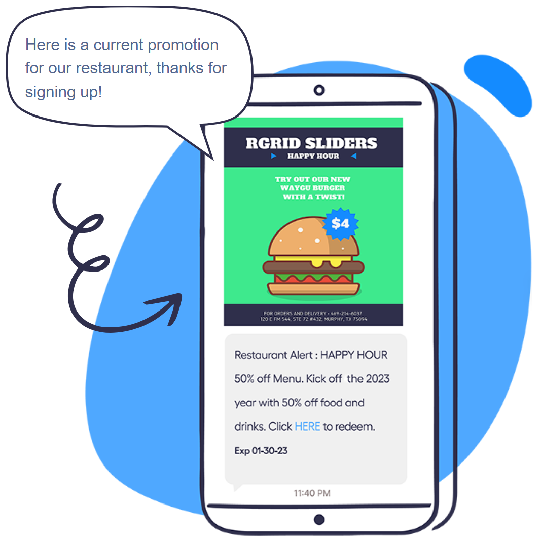Callers can press a keypad button to receive promo texts via your phone menu.