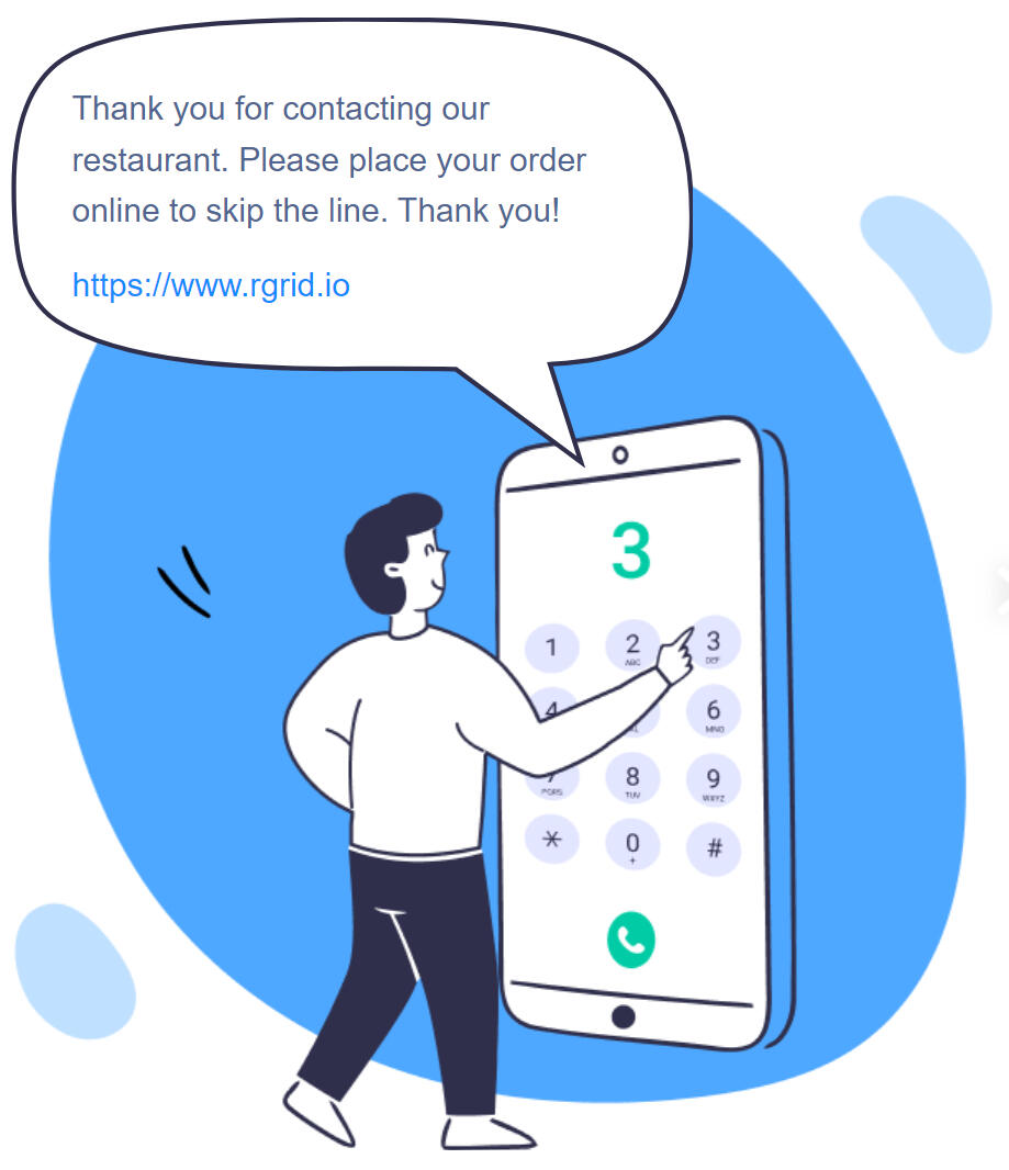 Call Queue by RGRID optimizes your restaurant's phone lines by queuing incoming calls and reducing dropped calls. Missed a call? Respond with a voicemail prompt or SMS with an online ordering link to turn it into a sale.